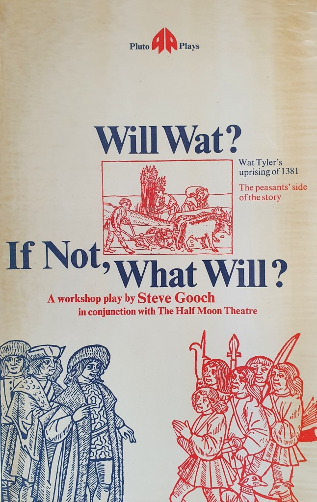 There was likely indirect CPGB influence on the Laurie Lee (who had gone out to Civil War Spain) in his near forgotten verse play about ‘John Balle’ and the uprising: Peasants’ Priest, which was performed between 21 and 28 June 1947 at the Canterbury Cathedral Festival. While there have been several unpublished and forgotten plays about 1381, there is plenty of material available about another: the popular fringe theatre performance with interests in class struggle and audience participation, Will Wat, If Not What Will? The play was written (in collaboration with the cast) by Steve Gooch and performed at the Half Moon Theatre on Alie Street in the East End of London (26 May–24 June 1972). Reviews, video interviews, photographs, etc. are collected on the Stages of Half Moon website.