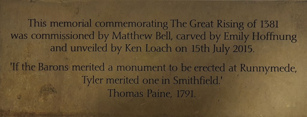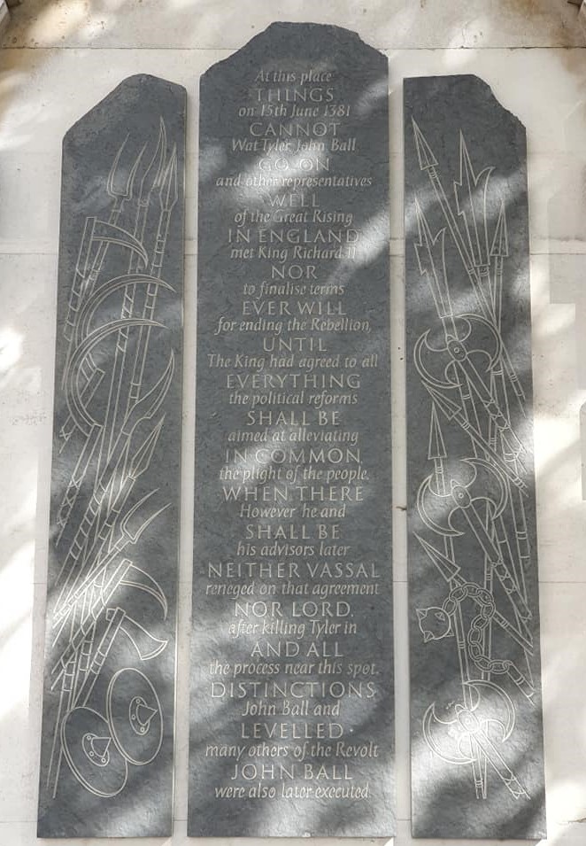 Back in London, sites of the revolt have been commemorated. On 11 June 2011, Tony Benn unveiled the Peasants’ Revolt plaque on the outside wall of the pub, The Highbury Barn, in Jeremy Corbyn’s Islington North constituency.