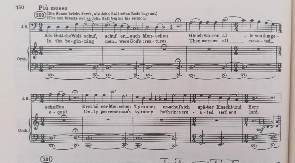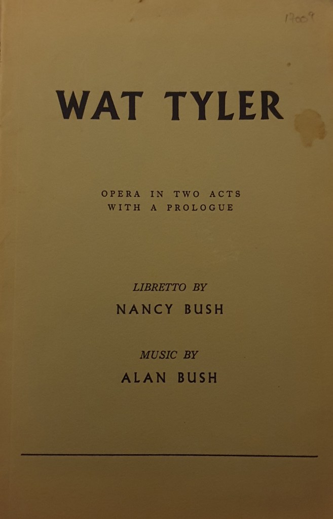 The famed composer and Communist, Alan Bush, was a driving force behind Music and the People and himself produced an opera, Wat Tyler, with the libretto written by his wife Nancy Bush. Throughout the opera, folk song (including ‘Cutty Wren’) plays an important role in the background and part of the Bushes’ understanding of Ball as a key figure in the development of a homegrown socialism. Wat Tyler was one of the winners of a competition for new operas as part of the 1951 Festival of Britain but the first performances of the opera were in the German Democratic Republic (GDR). Wat Tyler was broadcast on Berlin Radio in 1952 and first on stage in Leipzig (1953), Rostock (1955), and Magdeburg (1959). The full script and details from the Berlin and Leipzig performances are available here. Wat Tyler went relatively ignored in Britain and while a version was broadcast on BBC in December 1956, it was not performed on stage in the UK until 1974 by the Workers’ Music Association. Photographs of the 1974 performance are available at the Alan Bush Music Trust website. A documentary on Alan Bush’s life is available here.